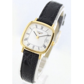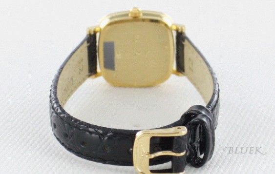 イエローゴールド金無垢のスクエアケースに、ホワイト文字盤やブラックアリゲーターベルトで知的クラシ カルに仕上げました。フェイスにはローマンインデックスやシルバー指針がスマートな時を刻み、3時位置の日付表示がさりげなく。小振りな23mmで女性ら しく、シンプルな機能でお出掛けの相棒としてもぴったりな時計です。