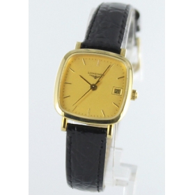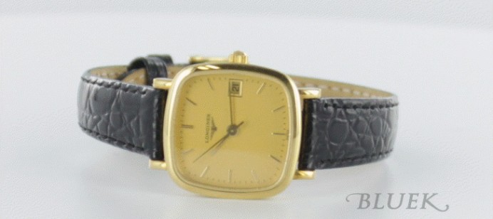 スイスの腕時計老舗ブランドであるロンジン。ラウンドケースが代表的なデザインで、シンプルにこだわっ たすっきりとしたデザインにはロンジンの歴史を感じさせる堂々とした風格が漂うグランドクラシックシリーズ。その中でもめずらしいスクエアケース。一切の 飾り気を排除したシンプルなデザインで年齢を問わず着けていただけるベーシックなフォルム。角を落とした丸みがかったスクエア型の文字盤にはシンプルな バーインデックスに、カレンダー日付表示という必要最低限の機能を配したウォッチは、シンプルな作りがイエローゴールドの金無垢の輝きをより一層引き立て ます。