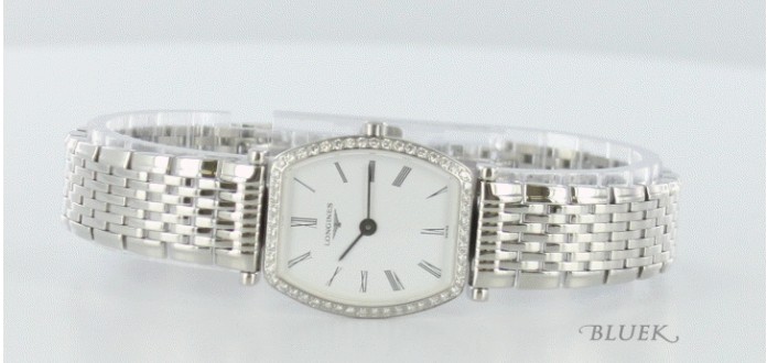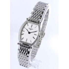 ロンジンは1832年にスイスのサンティミエにて創業。1919年から国際航空連盟に公式採用され、人 類初の大西洋単独無着陸飛行の成功へと導き、航空機産業を躍進させた。世界130ヶ国以上に展開しているスイスの高級腕時計メーカー。シンプルにこだわっ たすっきりとしたデザインにはロンジンの歴史を感じさせる堂々とした風格が漂うグランドクラシックシリーズ。一切の飾り気を排除したシンプルなデザインで 年齢を問わず着けていただけるベーシックなフォルムが特徴です。52粒(0.436ct)の最高級VVSダイヤモンドをベゼルに装飾。マットホワイト文字 盤には華奢なローマン数字や指針が並び、知的さを感じ取れます。ブレスは9連の鏡面ステンレス。ブレスの厚みを抑えることで、重さ約45gと腕に負担がか かりません。繊細なデザインはドレッシーな雰囲気で、ドレスウォッチにも活躍します。