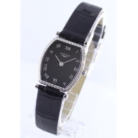 ロンジンは1832年にスイスのサンティミエにて創業。1919年から国際航空連盟に公式採用され、人 類初の大西洋単独無着陸飛行の成功へと導き、航空機産業を躍進させた。世界130ヶ国以上に展開しているスイスの高級腕時計メーカー。シンプルにこだわっ たすっきりとしたデザインにはロンジンの歴史を感じさせる堂々とした風格が漂うグランドクラシックシリーズ。一切の飾り気を排除したシンプルなデザインで 年齢を問わず着けていただけるベーシックなフォルムが特徴です。厚みを抑えたトノー型ステンレスケース。ベゼルにはダイヤモンドが装飾されていて、フェイ スに広がるようなローマンインデックスが配置されたブラックの文字盤は小振りながらも主張し、さらにベルトには光沢のあるアリゲーターレザーが艶やかで存 在感も抜群。