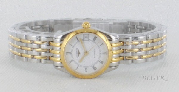 コンビボディにゴールドベゼルが映えホワイト文字盤が浮かび、艶やかな7連ブレスが華やかインテリジェンスに仕上げた時計です。フェイスではゴールド指針やローマンインデックスが時を刻み、わずか24mmサイズが軽快滑らかにフィット。手元をシンプルに包みます。