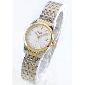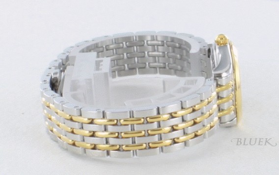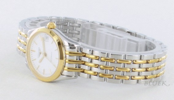ゴールドベゼルにホワイト文字盤が浮かび、艶やかな7連コンビブレスが華やかでシンプルに仕上げた時計です。フェイスではゴールドの指針やバーインデックスが時を刻み、わずか24mmサイズが軽快滑らかにフィット。手元をあでやかに包みます。