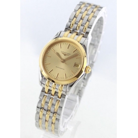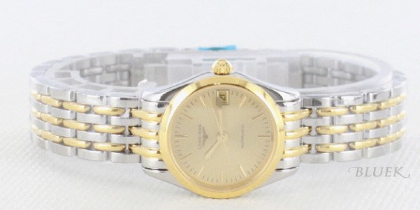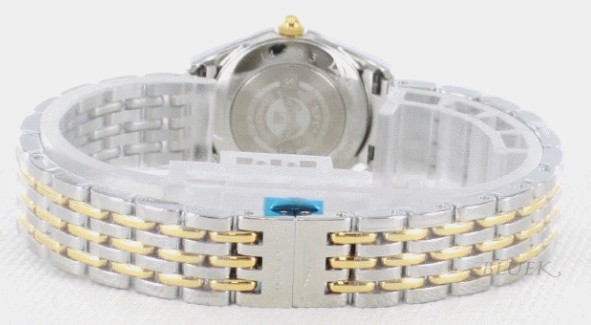 24mmの小振りなゴールドのベゼルや文字盤が落ち着いたオーラを放ち、ゴールドの丸みを帯びたコマを 組み合わせた7連コンビブレスがクラシカルなウォッチです。フェイスはゴールド1色でシンプルに、3時位置には日付表示を搭載。まさにゴールドで手元を華 やかに整える、そんな時計です。