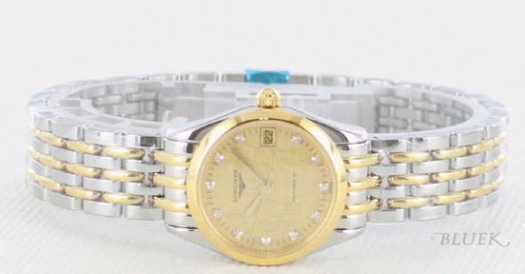 24mmの小振りなゴールドのベゼルや文字盤ではダイヤインデックスが煌き、ゴールドの丸みを帯びたコ マを組み合わせた7連コンビブレスがクラシカルなウォッチです。メッシュのギョーシェ模様が施されたフェイスは深く美しく、ダイヤとゴールドで華やかなが ら落ち着いた高級感を醸し出します。3時位置には日付表示を搭載。まさに手元に美麗ゴールドを添える、そんな時計です。