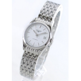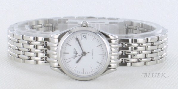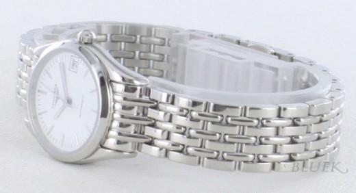 シルバーボディにホワイト文字盤が浮かび、艶やかな7連ブレスがスタンダードに仕上げた時計です。フェイスではシルバーの指針やバーインデックスが時を刻み、わずか24mmサイズが軽快滑らかにフィット。手元をシンプルに包みます。