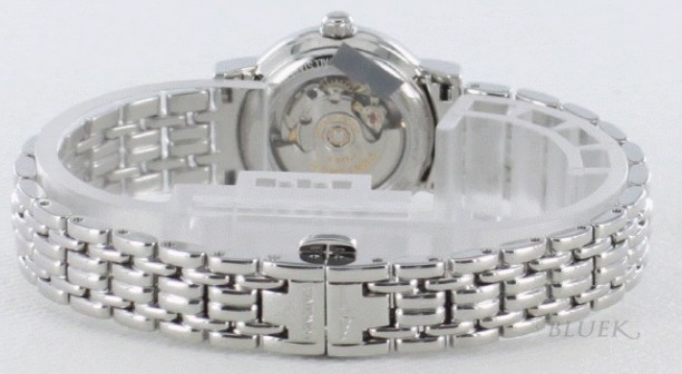 ホワイト文字盤に艶やかな5連ステンレスブレスが落ち着いた知的スタンダードに仕上げた時計です。フェ イスはシンプルにブラックのローマンインデックスと指針や3時位置の日付表示が時を刻み、わずか6mmの厚さで45gが軽快滑らかにフィット。バックスケ ルトンで自動巻きムーブメントの動きを堪能。手元を知的なオーラで包みます。