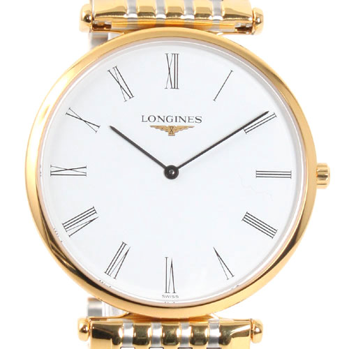 ホワイト文字盤にブラックの指針、ローマンインデックスを配置。12時位置にブランドロゴを搭載。