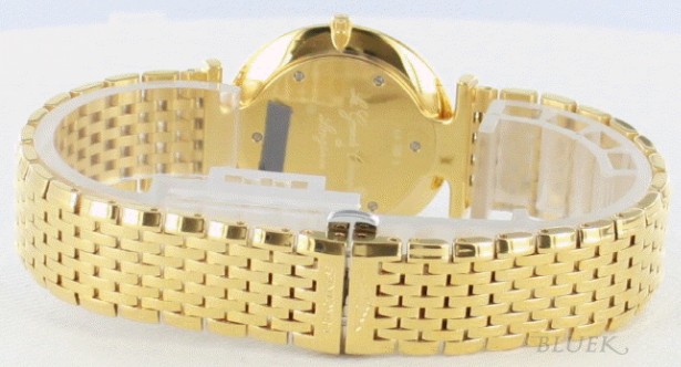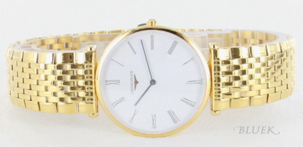 華やかなゴールドケースにホワイト文字盤が浮かび、艶やかな9連ブレスがスリムゴールドのオーラを主張 した時計です。フェイスはシンプルにブラックのバーインデックスと指針のみで時を刻みます。わずか4mmの厚さで70gが軽快にブレスのフィット感が堪ら ない。時計のみの機能を重視しスーツスタイルにもぴったりなグランドクラシックです。