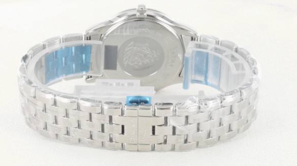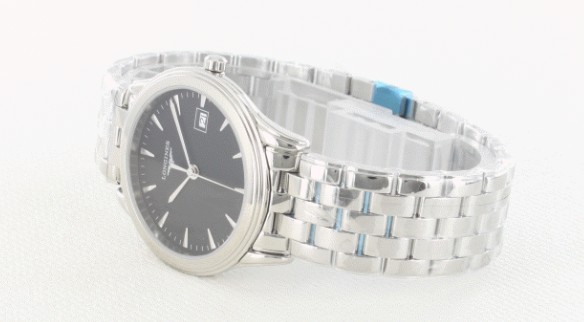 35ミリケースに、ブラックダイヤルと5連ブレスを組み合わせたフラッグシップです。厚さわずか7ミリ と非常に薄く、エレガントな表情が魅力のモデルとなっています。ブラックダイヤルにはシルバー指針やくさびインデックスが映え、高い視認性を確保するとと もに、シンプルな空間の美しさを発揮。つややかなステンレスブレスともしっくり調和し、クラシカルな味わいと洗練されたモダンさが見事に融合しています。 3時位置には日付窓を配し、実用性も抜群。飽きの来ないスタンダードなデザインは、幅広い層の男性におすすめです。