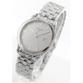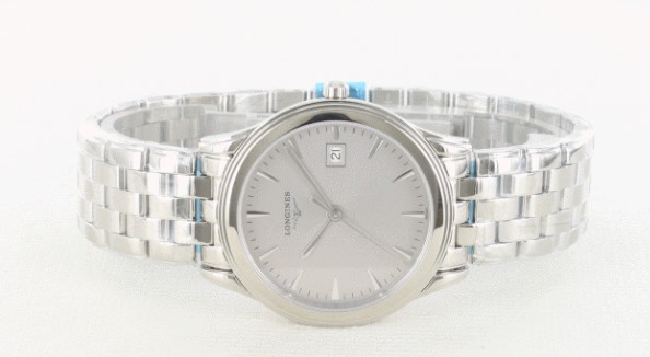 非常に薄くて軽い、エレガントなフラッグシップ3針モデルです。フラッグシップという名の通り、ロンジ ンの顔ともいうべきこのモデルは、オールシルバーで仕上げられ、クラシカルな美しさと気品あふれるたたずまいを見せています。一切の無駄を省いたシンプル なデザインは、キラキラ光るくさび形インデックスや先だけ少し太くしたスマートな指針など、細部にわたる意匠も見事。3時位置には日付窓を配し、実用性も 抜群です。ベーシックでスタンダードなデザインは、シーンや装いを選ばず、オールマイティに愛用していただけます。