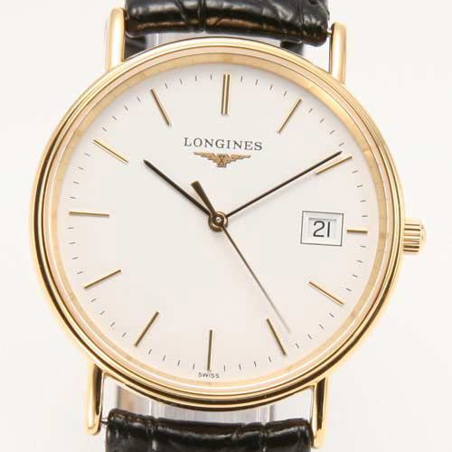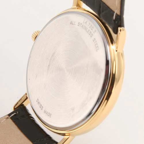 キレイに円を描く丸型フェイスにバーインデックスでクラシカルな表情に。眩しいホワイトカラーはシンプルなデザインに華を添えています。3時位置には日付表示も付いています。