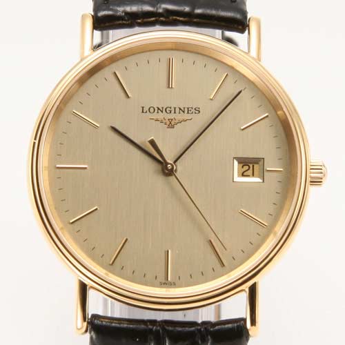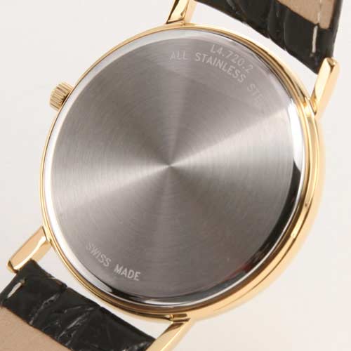 ゴールドの質感を十分に楽しませてくれる上品な仕上がり。文字盤とは違う輝きを放つ同色のバーインデックスでさらにフェイスに華を添えてくれます。3時位置にはデイト表示を配置。使う人の年代を問わず、長くお使いいただけるデザインです。
