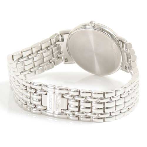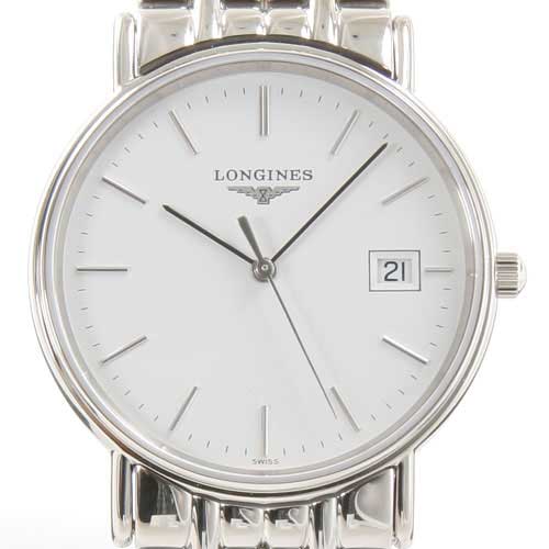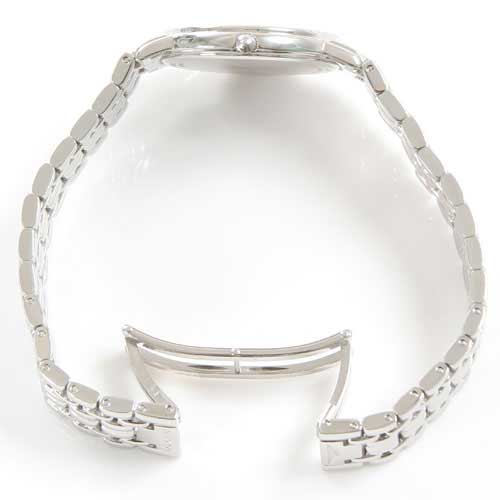 爽やかなホワイト文字盤に輝くシルバーのバーインデックスがクラシカルなフェイスに。3時位置には日付表示を配置