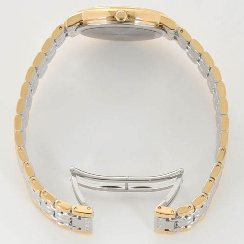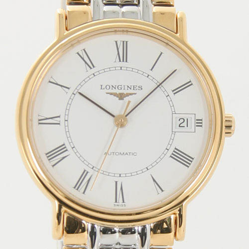 ホワイト文字盤にブラックの指針、ローマンインデックスを配置。12時位置にブランドロゴ、3時位置に日付表示、6時位置にオートマチックである事を示す刻印。
