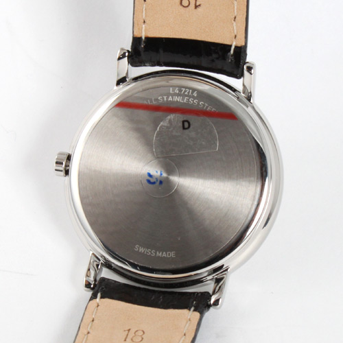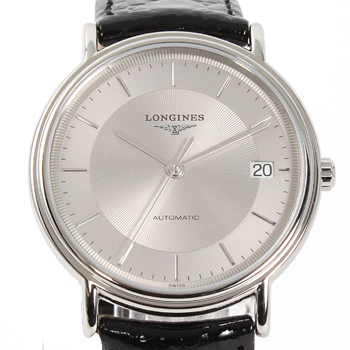 シルバー文字盤に同色の指針、バーインデックスを配置。12時位置にブランドロゴ、3時位置に日付表示を搭載。6時位置にオートマチックであることを示す刻印。