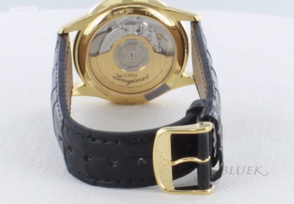 イエローゴールド、ステンレススティール(バックル部分)、アリゲーターレザー、サファイアガラス