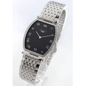 トノーケースにダイヤが敷き詰められたベゼルが煌き、ブラック文字盤や9連ブレスがクラシカルな味わい を醸し出すウォッチです。わずか5mmの厚さのフェイスでは小振りなローマンインデックスや、すらっと伸びたシルバー指針が品のある佇まい。70gの羽の ような装着感で快適にフィット。パーティーシーンや普段の生活の中のアクセントなど、ジュエリーとしてもお使いいただけます。