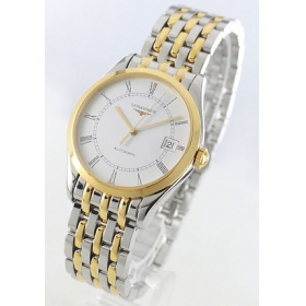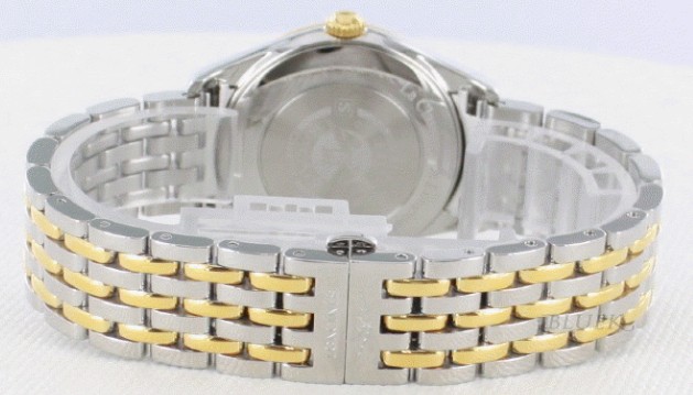 ゴールドベゼルやホワイト文字盤が落ち着いたオーラを放ち、ゴールドの丸みを帯びたコマを組み合わせた 7連コンビブレスがクラシカルなウォッチです。シンプルなフェイスにはローマンインデックスが浮かび、3時位置には日付表示を搭載。年齢を重ねるとともに 人生の深みを増す、そんな時計です。
