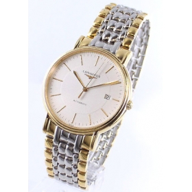 ロンジンは1832年にスイスのサンティミエにて創業。1919年から国際航空連盟に公式採用され、人 類初の大西洋単独無着陸飛行の成功へと導き、航空機産業を躍進させた。世界130ヶ国以上に展開しているスイスの高級腕時計メーカー。シンプルにこだわっ たすっきりとしたデザインにはロンジンの歴史を感じさせる堂々とした風格が漂うグランドクラシックシリーズ。一切の飾り気を排除したシンプルなデザインで 年齢を問わず着けていただけるベーシックなフォルムが特徴です。艶やかでひとつひとつ丸みのあるコマを繋ぎ合わせた5連からなるブレスは、シルバーとゴー ルドを組み合わせたコンビブレス。文字盤はバーインデックスと3針、カレンダー表示のみとシンプルなデザイン。ケース径38mmと程良いサイズのケースは 厚さを7mmまで抑え、使い勝手を徹底的に意識しています。