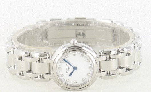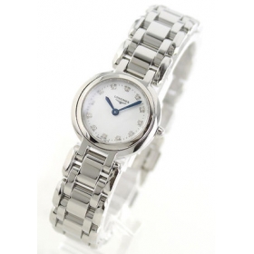 女性らしさが際立つ時計、それがロンジンのプリマルナです。プリマルナとはドイツ語とラテン語を組み合 わせた造語で、「極上の月」を意味する言葉。まさに月のように輝く女性のためにデザインされたシリーズで、その柔らかく丸みを帯びたケースやブレスは、ひ と目で誰をも魅了する力強い輝きにあふれています。中でもホワイトシェルダイヤルに、12粒のダイヤモンドが煌めくこのモデルは非常に優美で、女性らしい 雰囲気と存在感たっぷり。青いスティール指針も上品なアクセントになり、気品漂うエレガントな手元を彩ります。