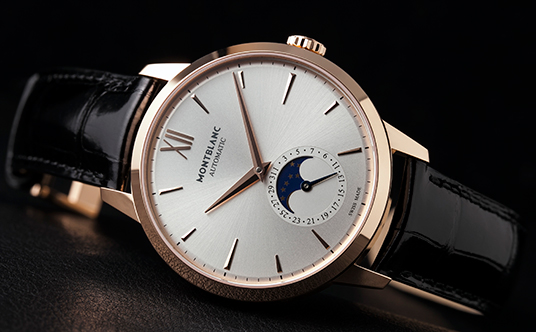 モンブランマイスターシュテュック ヘリテイジ ムーンフェイズ111185新作 6時位置に大型のムーンフェイズを備えた『マイスターシュテュック ヘリテイジ ムーンフェイズ(Meisterstück Heritage Moonphese)』は、針表示式のカレンダーを採用することで、ダイアル上がスッキリとまとまっている。 マイスターシュテュック ヘリテイジ ムーンフェイズ