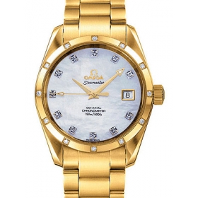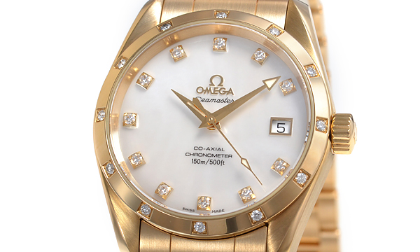 オメガ時計コピー シーマスター 価格アクアテラ 2164.75 オートマチック ダイヤモンド ホワイトシェル レディース