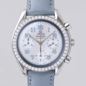OMEGAオメガ コピー スピードマスター ダイヤベゼル グレー革 ホワイトシェルグレーアラビア 3815.72.55