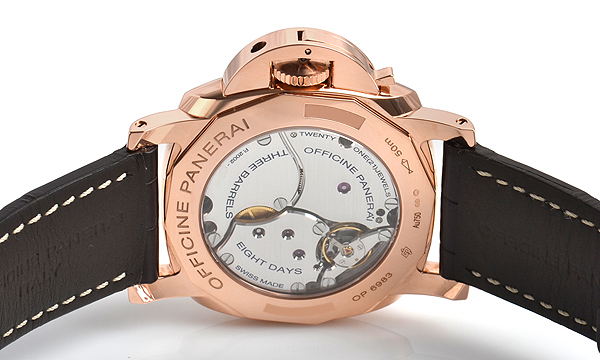 サイズ | カラー | 素材 型番 PAM00576 機械 手巻き 材質名 レッドゴールド タイプ メンズ 文字盤色 ブラウン 外装特徴 シースルーバック ケースサイズ 44.0mm 機能 2タイム表示 AM/PM表示 デイト表示 パワーインジケーター 秒針ゼロリセット 付属品 内・外箱 ギャランティー 自社開発Cal.2002を搭載。 8日巻きというロングパワーリザーブを一目で確認出来るように付けられたインジゲーターは、目盛りが水平に動くパネライ スーパーコピー独自のユニークな表示方法です。 時刻を合わせやすいように秒針がゼロに戻るゼロリセット機能を備えるなど、自社キャリバーならではの独自機構が満載されています。 |