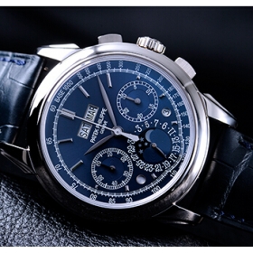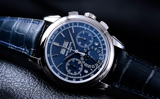 新作「Ref.5270 永久カレンダー搭載クロノグラフ(Ref.5270 Perpetual Calendar Chronograph)」は、ホワイトゴールドのケースに、タキメーター付きクロノグラフ機能と永久カレンダー機能を搭載するグランド・コンプリケーションである。 Ref.5270