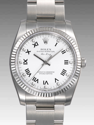 プレーンなイメージのエアキングですが?ベゼルをフルーテッドに?そしてダイヤルにダイヤモンドをセッティングすることにより、華やかな雰囲気を演出しています。