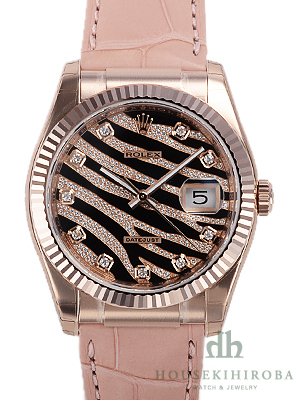 メンズサイズのデイトジャストですが、時計のサイズが大きくなっている昨今では、女性がスポーティーにお使いになってもお似合いだと思います。
