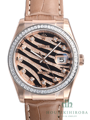 ラッカーとダイヤモンドで飾られた通称ゼブラダイヤルが目を惹きます。