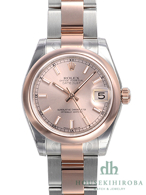 プレーンなベゼルと3連のオイスターブレスがスポーティーな印象を与えながらも、可愛らしさも兼ね備えたモデルになっています。