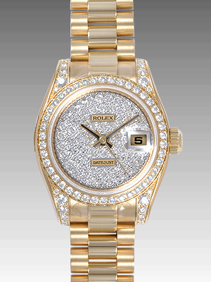 ダイヤル全面とベゼル?ケースラグにダイヤモンドがセッティングされ?とても華やかな雰囲気の一本です。