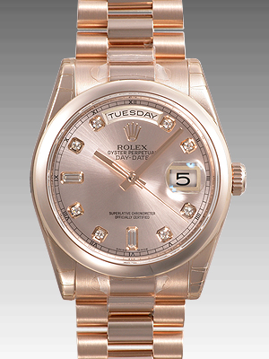 フォーマルなイメージの強いデイデイトですが、エバーローズゴールド独特の色合いにより、その高級感と共に、大人の色気を感じさせる一本になっています。