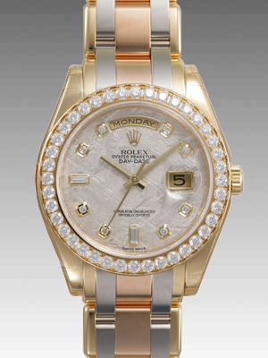 隕石で作ったメテオライト文字盤を使用し、存在感では文字盤に引けをとらないベゼルダイヤ。そしてYG・PG・WGからなる重厚感あるオイスターⅡブレス。