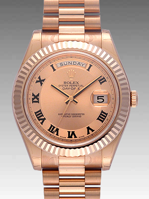 デイデイトⅡのエバーローズゴールドモデルに、落ち着きのあるローマンインデックスを合わせたモデルです。