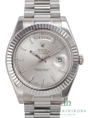 デイデイトⅡのホワイトゴールドモデルではむしろ少ないシルバーバーダイヤルです。