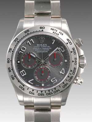 新しく追加されたグレー文字盤の入荷です。クールな印象の中にも、赤い針がデイトナらしいスポーティーさを演出しています。
