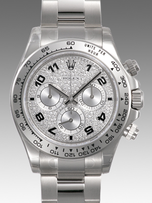 文字盤にびっしりとダイヤモンドが敷き詰められた豪華なデイトナです。