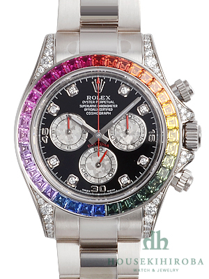 バーゼルワールド2012の情報をごらんになった方なら、誰しもが目を見張ったに違いない話題作「デイトナ レインボーベゼル」が入荷いたしました。