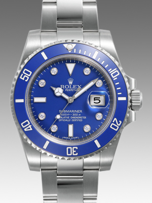 新型サブマリーナデイトで発売以来?人気モデルとなったホワイトゴールドモデルに、従来には設定の無かった8ポイントダイヤダイヤルが追加されました。