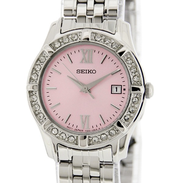【文字盤】ピンク 【ケース】シルバー 【ベルト】シルバー |