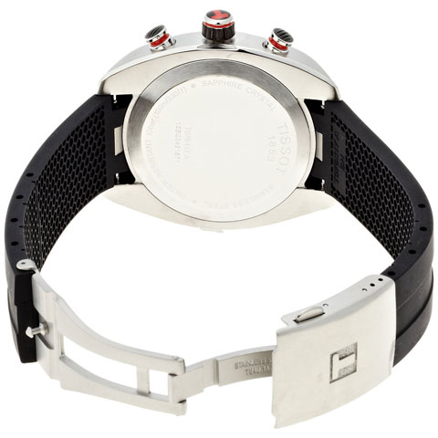 10気圧(水深100メートル)の防水性能などの高い技術的クオリティーと、モータースポーツに力を入れるTissot(ティソ)らしくモータースポーツから得たインスピレーションが洗練されたデザインにプラスされています。