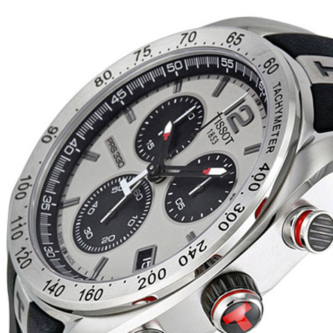 10気圧(水深100メートル)の防水性能などの高い技術的クオリティーと、モータースポーツに力を入れるTissot(ティソ)らしくモータースポーツから得たインスピレーションが洗練されたデザインにプラスされています。