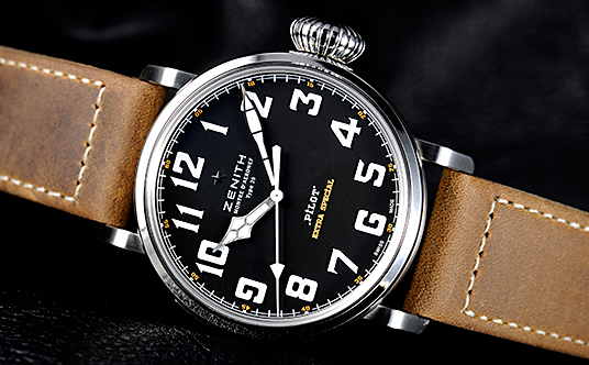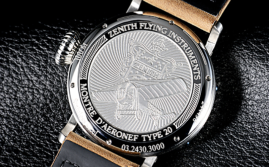仕様:ケース・バックにゼニス紋章と初期複葉機のレリーフ。